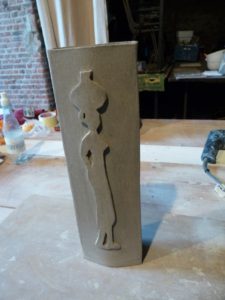 Dan wordt het werkstuk biscuit gebakken tot 1000 Graden